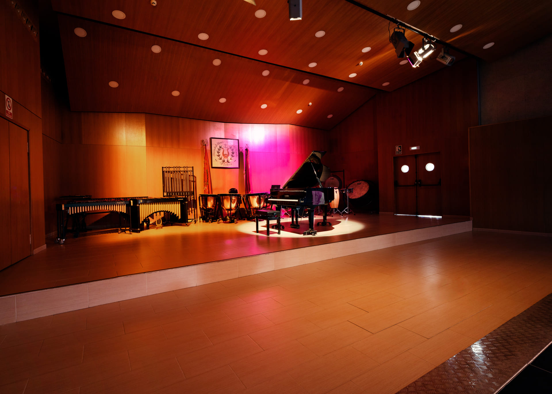 Its 170-seat Auditorium (Salón de Actos) features a 102 m² stage, ideal for orchestra rehearsals, concerts, recitals, and masterclasses. Equipped with a grand piano, it offers optimal conditions for both teaching and public performances.